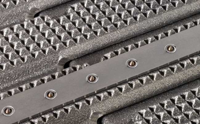 Na podajalni verigi večlistne žage so nameščene posebne konice, ki preprečujejo premikanje deske med razrezom in zagotavljajo enako mero letve po celotni dolžini (prikaz na sliki spodaj). »S tem prihranimo veliko kvalitetnega lesa. Z mizno krožno žago smo morali delati z večjo nadmero, precej letev pa je bilo tudi zažganih. Pri visokokvalitetnem lesu je pomemben vsak milimeter«, pravi direktor podjetja Formales, Tomaž Jamnik.