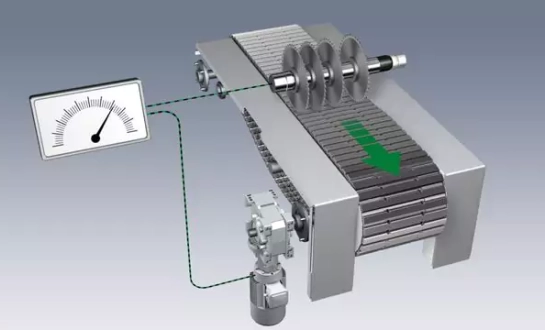 Obojestranska prizmatična vodila skrbijo za popolnoma ravno vodenje verige brez zračnosti. Celotna površina deske leži na verigi in se zanesljivo transportira skozi stroj.